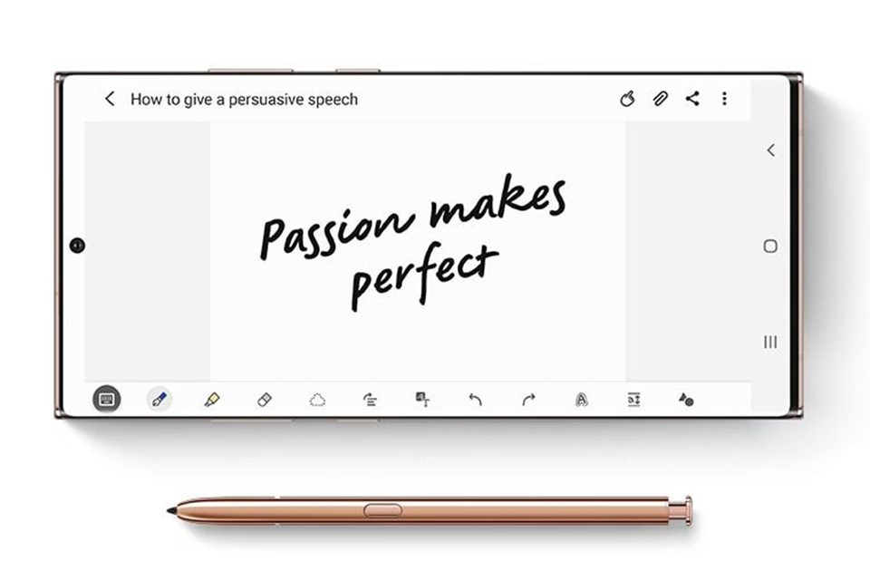 Với ứng dụng Samsung Notes trên cả điện thoại, máy tính bảng và máy tính, những ghi chú của bạn có thể được đồng bộ, chỉnh sửa dễ dàng trên mọi thiết bị. Ghi chú nhanh chóng trên điện thoại, sau đó xem và chỉnh sửa ở máy tính bảng hoặc máy tính để có màn hình lớn cùng nhiều công cụ hơn, Galaxy Note20 Ultra giúp mọi thứ liền mạch, hoàn hảo hơn bao giờ hết.